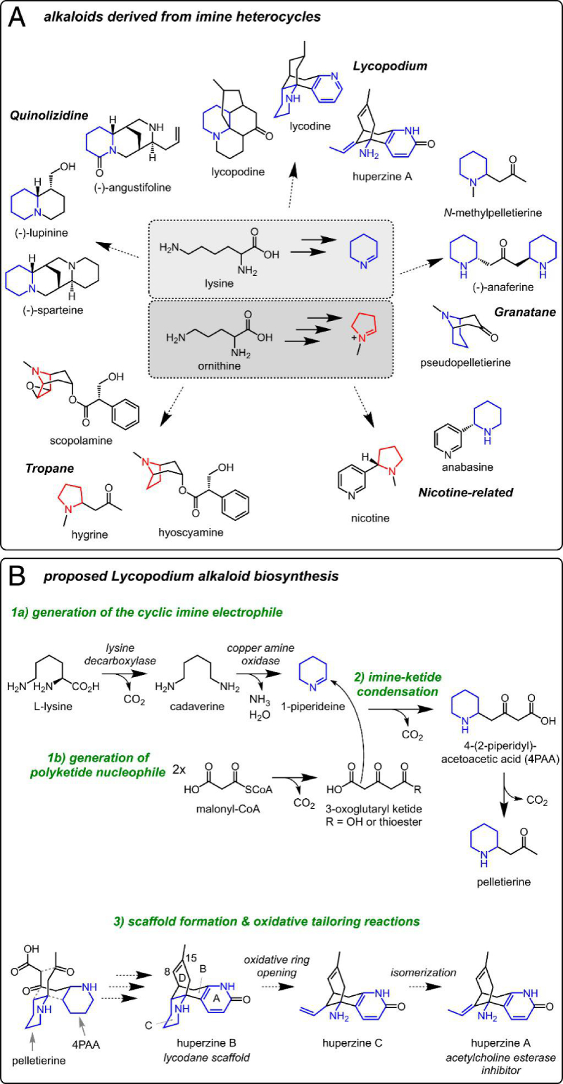 參考文獻: Nett RS, Dho Y, Low YY, Sattely ES. A metabolic regulon reveals early and late acting enzymes in neuroactive Lycopodium alkaloid biosynthesis. Proc Natl Acad Sci U S A. 2021 Jun 15;118(24):e2102949118. doi: 10.1073/pnas.2102949118. PMID: 34112718; PMCID: PMC8214681.