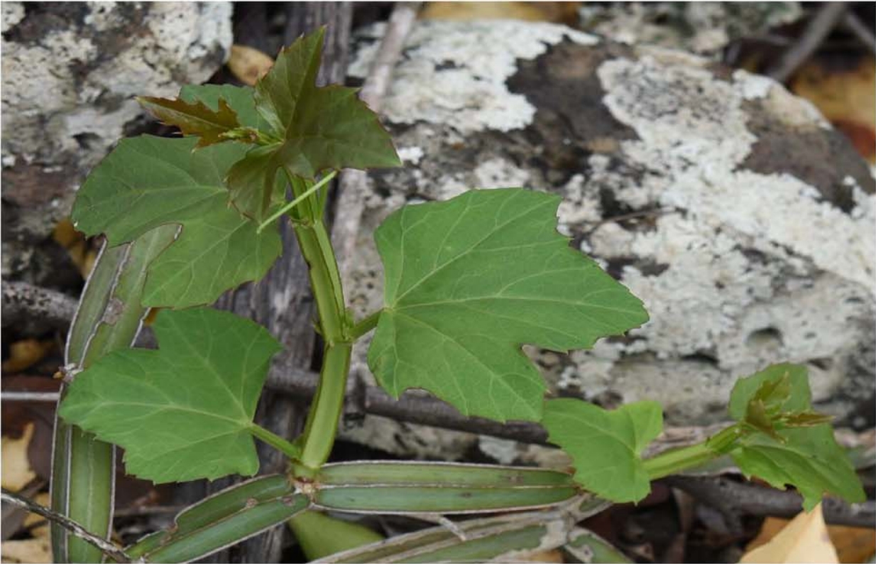 方莖白粉藤(Cissus quadrangularis)是葡萄科白粉藤屬多年生肉質(zhì)藤本,主要分布于熱帶亞熱帶地區,具有很強的抗旱能力。方莖白粉藤的葉片和莖中的光合途徑不同,葉片中為C3途徑,而莖中為景天酸代謝(crassulacean acid metabolism,CAM)途徑,是研究植物干旱適應和CAM起源的好材料。
