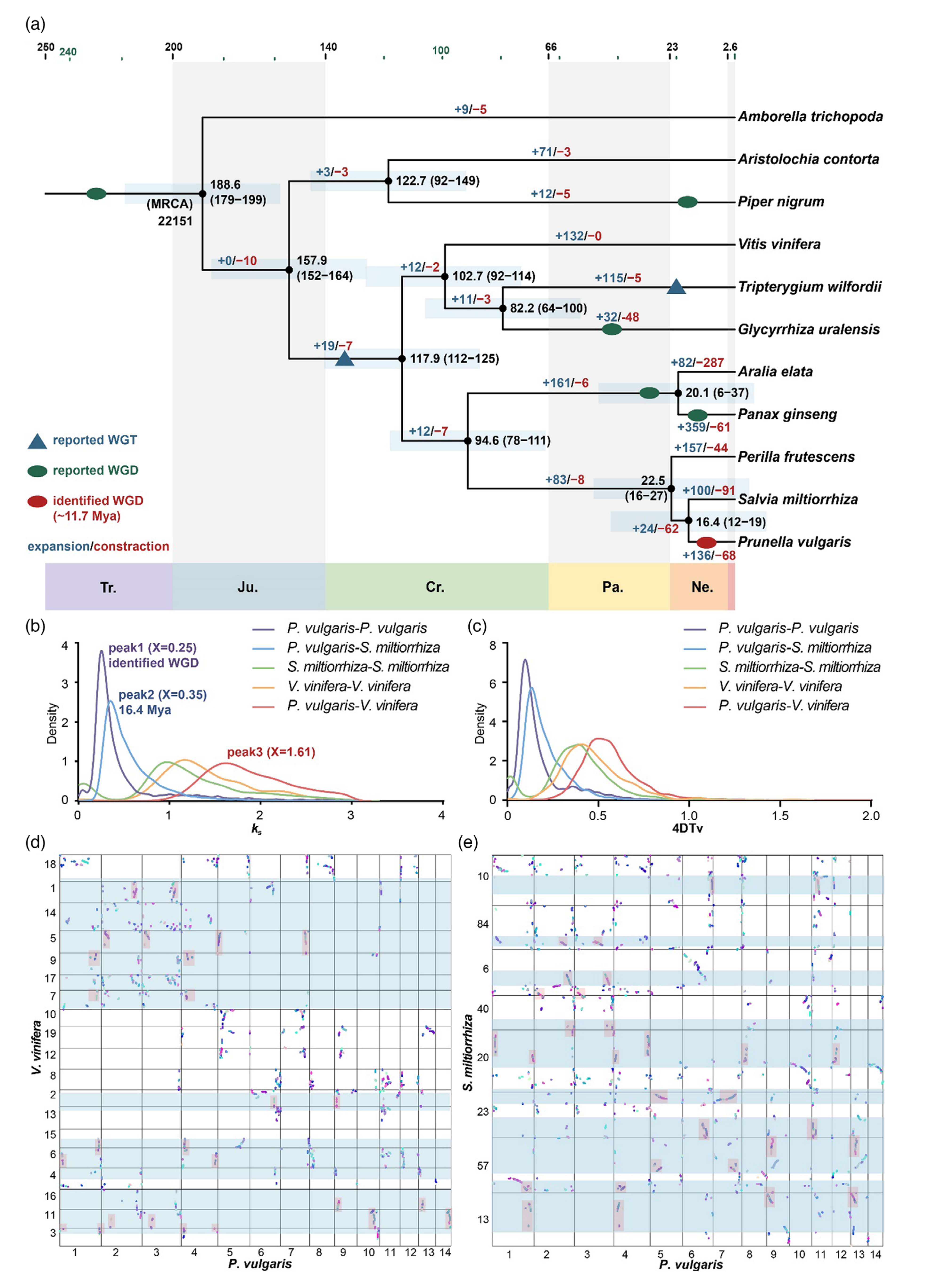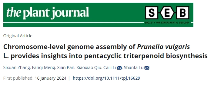 2024年1月16日,The Plant?Journal上線(xiàn)了一篇關(guān)于夏枯草基因組的研究論文,“Chromosome-level genome assembly of?Prunella vulgaris?L. provides insights into pentacyclic triterpenoid biosynthesis”,報道了組裝到染色體水平的夏枯草基因組,為進(jìn)一步闡明五環(huán)三萜的生物合成機制奠定了基礎。