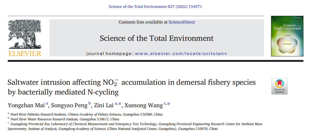 英文名稱(chēng):Saltwater intrusion affecting NO2? accumulation in demersal fishery species by bacterially mediated N-cycling