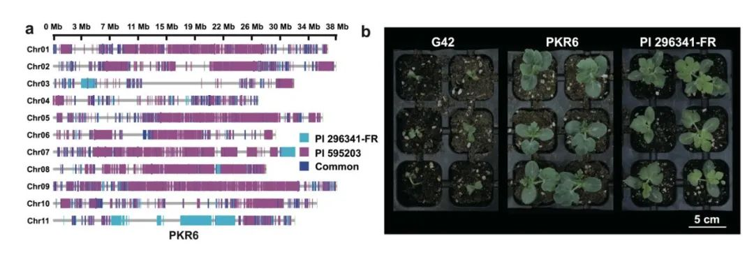 圖4-遠緣雜交創(chuàng )制優(yōu)良抗病種質(zhì)PKR6基因組及枯萎病抗性表型