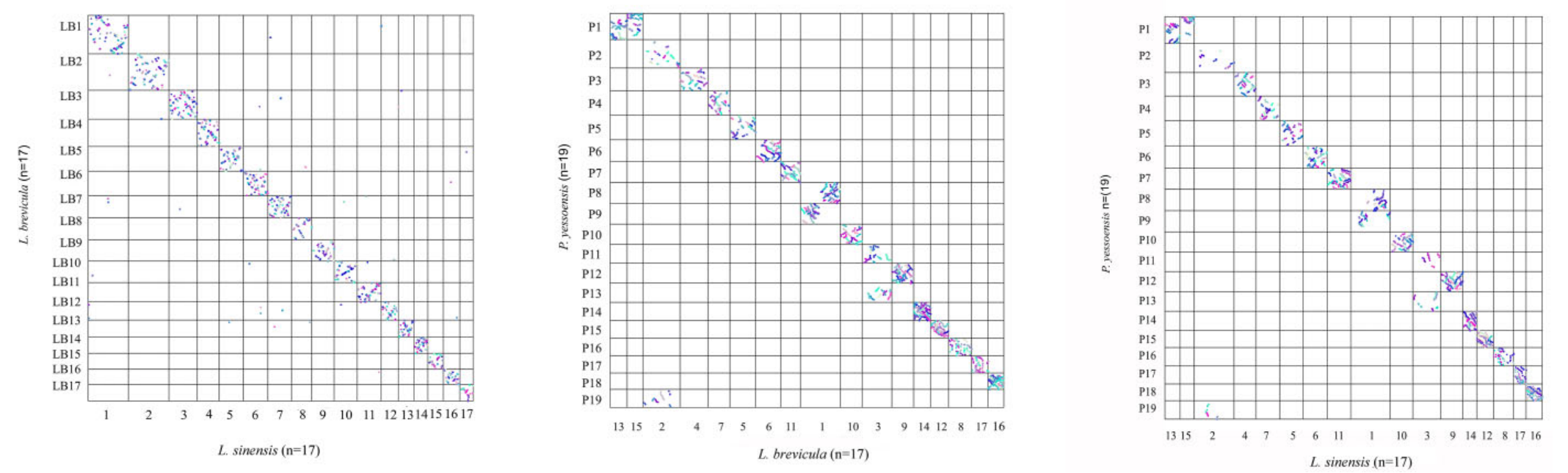宏觀(guān)共線(xiàn)性分析結果表明濱螺17條染色體可能由17條ALG經(jīng)過(guò)4次染色體分裂和4次染色體融合演化而來(lái),并推演了由ALG演化到雙殼-腹足共同祖先再到濱螺和扇貝的簡(jiǎn)約演化歷程,表明兩側對稱(chēng)動(dòng)物祖先的基因連鎖群在經(jīng)過(guò)上億年的演化之后在現存物種中仍然得以保留,為未來(lái)雙殼-腹足共同祖先核型的構建和核型進(jìn)化速率影響因素的研究提供了參考。