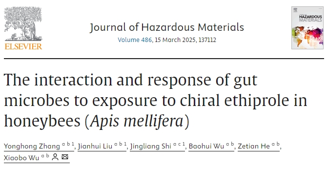 中文標題:《蜜蜂(Apis mellifera)腸道微生物對手性乙蟲(chóng)腈暴露的相互作用與響應》
