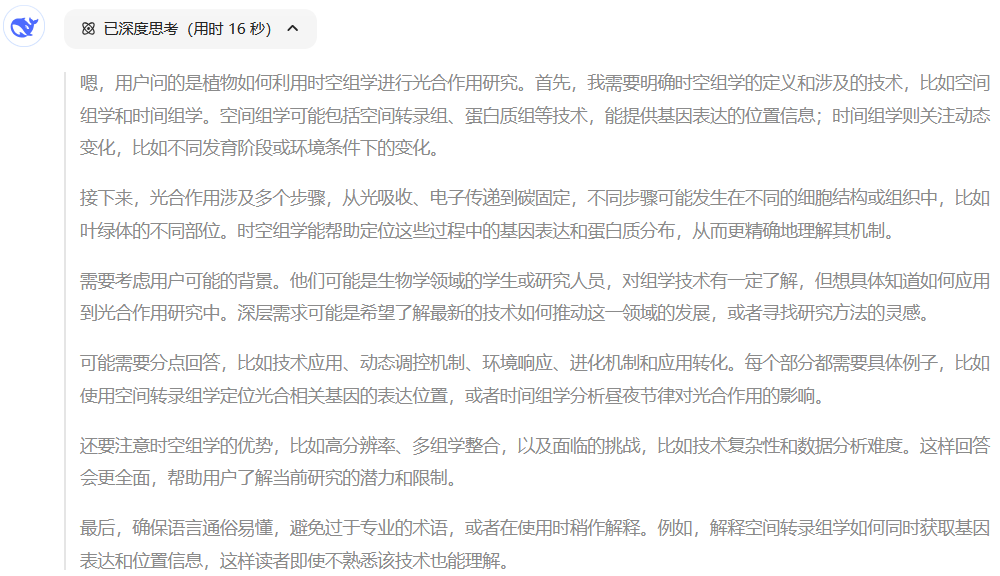 于是,我問(wèn)DeepSeek:植物如何利用時(shí)空組學(xué)進(jìn)行光合作用研究?