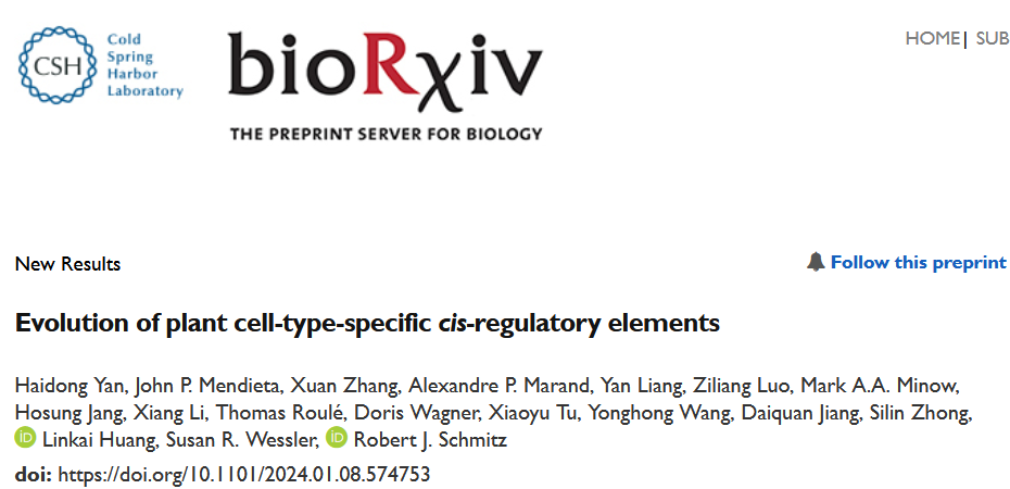 英文標題:Evolution of plant cell-type-specific?cis-regulatory elements發(fā)表期刊:bioRxiv