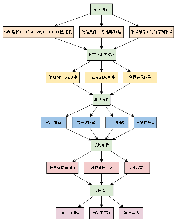 根據上述文獻,可以總結出應用時(shí)空組學(xué)解析植物光合作用機制常用思路的技術(shù)路線(xiàn)圖。