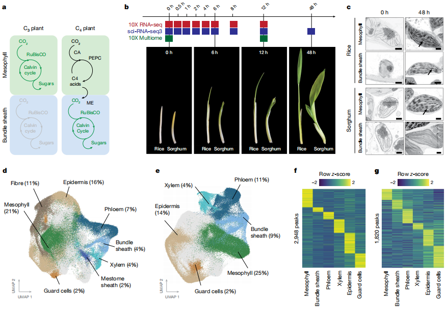 圖2-水稻和高粱幼苗去黃化過(guò)程中單細胞核的基因表達和染色質(zhì)可及性