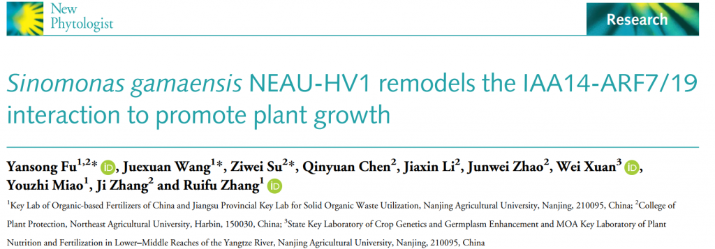 中文標題:《Sinnomaras gamaensis NEAU-HV1通過(guò)重塑IAA14-ARF7/19互作促進(jìn)植物生長(cháng)》