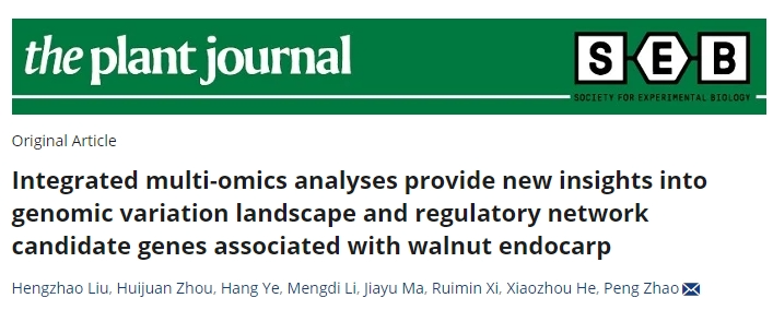 近日,西北大學(xué)生命科學(xué)學(xué)院趙鵬教授團隊在植物學(xué)領(lǐng)域國際知名期刊The Plant Journal(中科院1區top)在線(xiàn)發(fā)表了題為“Integrated multi-omics analyses provide new insights into genomic variation landscape and regulatory network candidate genes associated with walnut endocarp”的研究論文。