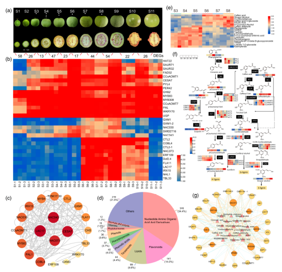 圖2-核桃果殼/內果皮十一個(gè)發(fā)育階段基因轉錄調控網(wǎng)絡(luò )及動(dòng)態(tài)形態(tài)變化