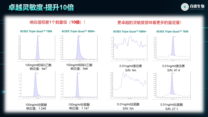 2025年9月17日,百邁客生物與百譜生物聯(lián)合發(fā)布“植物廣靶定量代謝組學(xué)技術(shù)” 。該技術(shù)采用?AB SCIEX QTRAP7500?高靈敏度檢測平臺,將檢測限降低一個(gè)數量級,相較于傳統?SCIEX Triple Quad? 6500 +?平臺,對低豐度植物代謝物、特殊滲透調節物質(zhì)等低含量成分的檢測能力顯著(zhù)提升。為深入研究植物生理機制提供更多可能。>>詳情