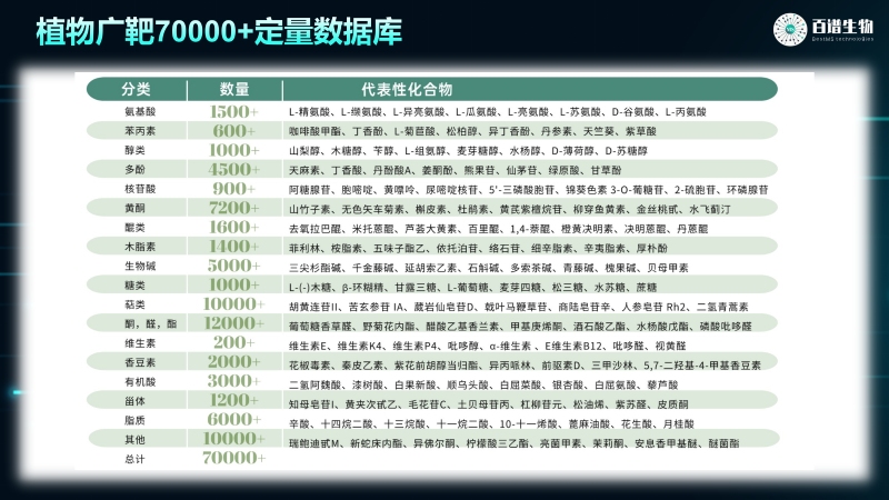 百譜生物總經(jīng)理曹以襯公布近期發(fā)展規劃:這款植物廣靶定量代謝組學(xué)產(chǎn)品,是我們團隊潛心研發(fā)的核心成果——它打破了傳統技術(shù)在檢測靈敏度、數據庫覆蓋度上的局限,將成為植物研究領(lǐng)域的高效工具!未來(lái)我們將聯(lián)合頂尖設備廠(chǎng)商升級檢測平臺,進(jìn)一步提升超微量代謝物檢測能力,為農業(yè)科研創(chuàng )新、品種改良與產(chǎn)業(yè)升級提供關(guān)鍵支撐。