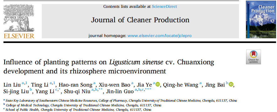 2025年12月,成都中醫藥大學(xué)國錦琳教授團隊在《Journal?of?Cleaner?Production》(中科院一區,Top期刊)上發(fā)表研究論文,題為“Influence?of?planting?patterns?on?Ligusticum?sinense?cv.?Chuanxiong?development?and?its?rhizosphere?microenvironment”。