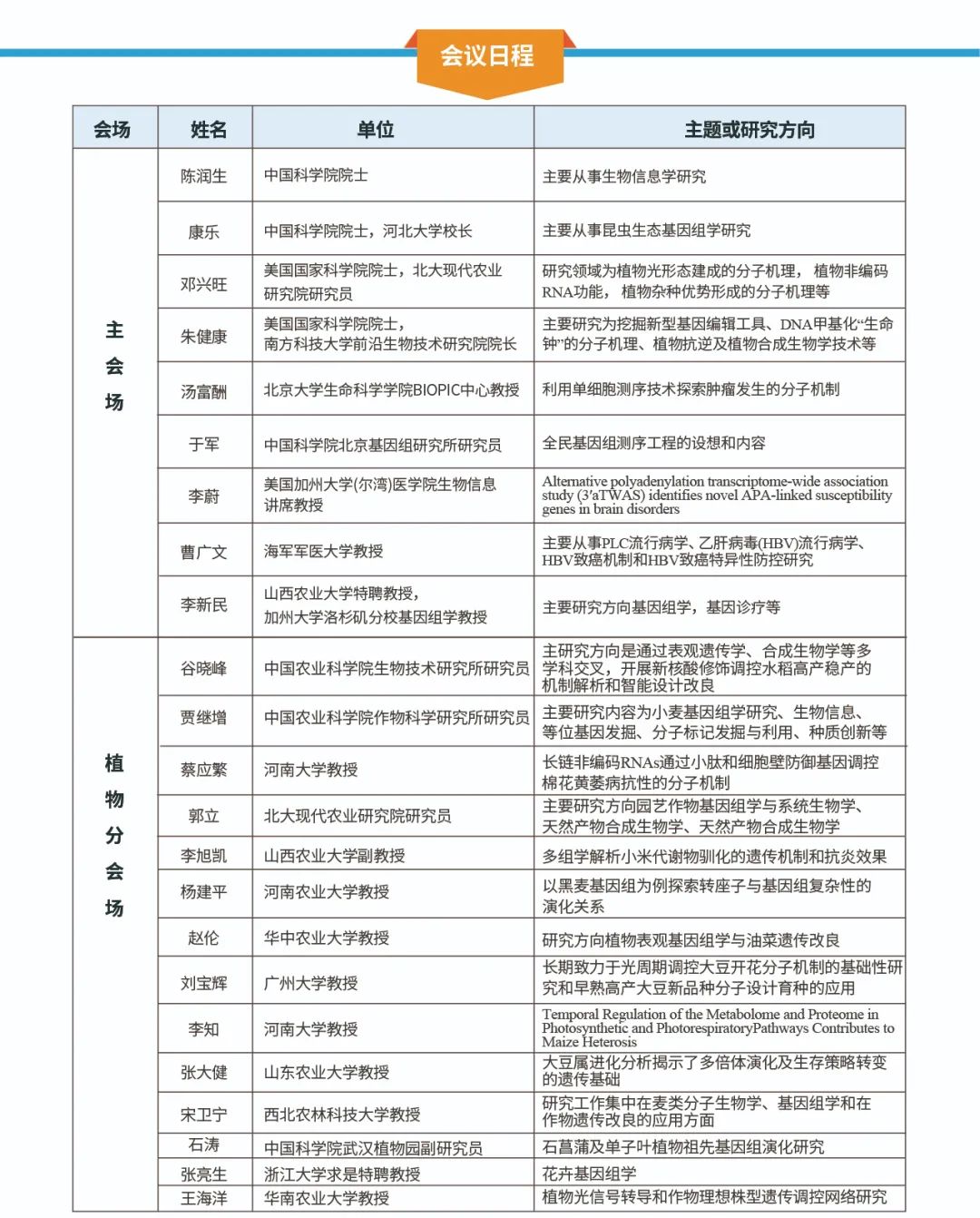 植物功能基因組學(xué)研究會(huì )場(chǎng)主題會(huì )場(chǎng)