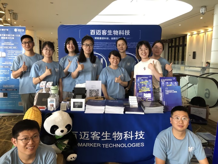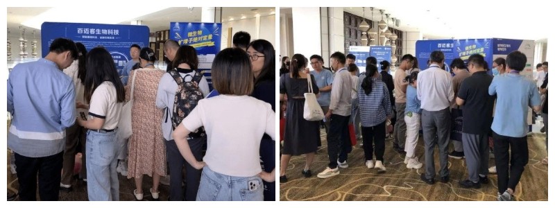 展會(huì )期間百邁客發(fā)揚以科研為中心的優(yōu)秀企業(yè)精神,全程設立展位,展示了全方位微生物組研究相關(guān)組學(xué)產(chǎn)品,包括前沿組學(xué)工具?絕對定量微生物組學(xué)測序,高數據量全長(cháng)多樣性研究,?長(cháng)度長(cháng)宏基因組學(xué),以及全方位探討生物學(xué)問(wèn)題的?動(dòng)植物-微生物互作多組學(xué)聯(lián)合分析應用產(chǎn)品,與前來(lái)參會(huì )的研究學(xué)者熱烈討論了地質(zhì)微生物組學(xué)現有研究問(wèn)題與發(fā)展前景,吸引了大量?jì)?yōu)秀學(xué)者駐留探討。展位現場(chǎng)火爆,大家對不同的產(chǎn)品提出了不同的問(wèn)題,現場(chǎng)的工作人員都做了詳細的解答和交流。