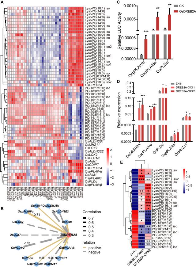 最后,為了進(jìn)一步準確了解成熟果實(shí)中轉錄水平與代謝物變化之間的關(guān)系,作者進(jìn)行了DEGs與DAMs之間的相關(guān)分析,其中,變化趨勢相同的DEGs和DAMs主要涉及類(lèi)黃酮、酚酸類(lèi)、氨基酸及其衍生物、萜類(lèi)、有機酸、脂類(lèi)等(圖7)。