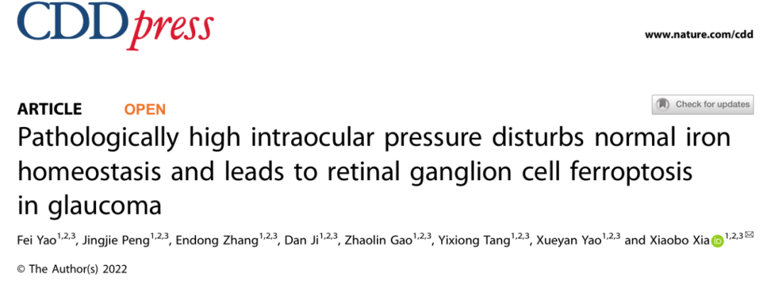 ]]>2022年8月,百邁客合作客戶(hù)中南大學(xué)湘雅醫院眼科中心/湖南省眼科重點(diǎn)實(shí)驗室夏曉波教授團隊在《Nature》子刊《Cell Death & Differentiation》(IF:12.067,中科院一區)發(fā)表了研究成果“Pathologically high intraocular pressure disturbs normal iron homeostasis and leads to retinal ganglion cell ferroptosis in glaucoma”(病理性高眼壓干擾正常鐵穩態(tài)并誘導青光眼視網(wǎng)膜神經(jīng)節細胞鐵死亡),首次報道了鐵死亡與青光眼發(fā)病機制的研究。百邁客為該研究提供了ONT全長(cháng)轉錄組建庫測序分析服務(wù)。