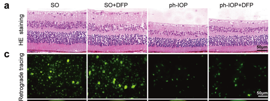 研究背景病理性高眼壓:青光眼是全球首位不可逆的致盲性眼病,可累及各年齡階段人群,臨床表現為進(jìn)行性的視野缺損和視神經(jīng)損害,視網(wǎng)膜神經(jīng)節細胞(RGC,視網(wǎng)膜唯一的中樞傳入神經(jīng)元)的選擇性和不可逆性丟失是青光眼病理?yè)p害的基礎。病理性高眼壓(pathological high intraocular pressure,ph-IOP)是青光眼發(fā)病的重要特征,也是導致青光眼RGC丟失的主要因素。通過(guò)藥物或手術(shù)途徑降低青光眼患者的ph-IOP是目前臨床中治療青光眼的唯一有效方法,但單純控制ph-IOP并不能完全阻止青光眼RGCs的丟失,臨床中很多青光眼患者在Ph-IOP控制至正常水平后,RGC丟失和視野損害仍在繼續,其具體的原因尚不完全清楚并存有爭議。