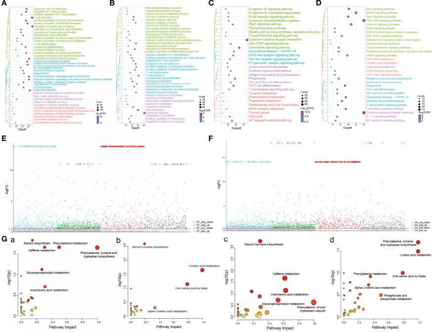 圖2?HT和GD中失調的基因表達與異常的免疫級聯(lián)和代謝信號傳導有關(guān)