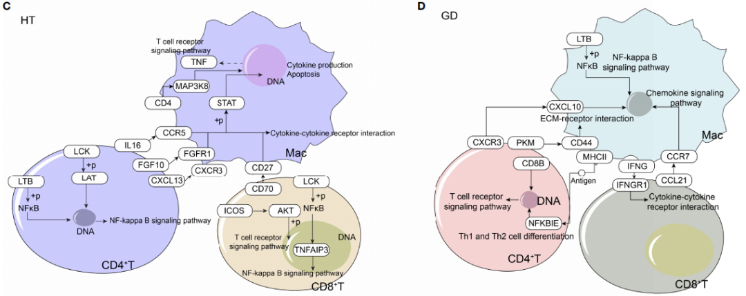 6、HT和GD微環(huán)境中T細胞和巨噬細胞的調控網(wǎng)絡(luò )分析