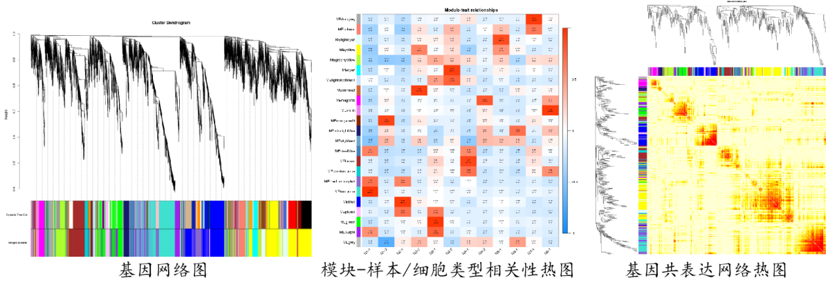 加權基因共表達網(wǎng)絡(luò )分析(Weighted Gene Co-expression Network Analysis, WGCNA)是構建基因共表達網(wǎng)絡(luò )的常用方法,可以探索模塊與特定表型或疾病的關(guān)聯(lián)關(guān)系,最終達到鑒定基因網(wǎng)絡(luò )的目的;單細胞測序技術(shù)可以揭示特定腫瘤組織中的細胞特異性,對細胞進(jìn)行分類(lèi),并且識別特定的標志物,但其檢測的細胞數量和病例來(lái)源都是有限的。利用WGCNA分析單細胞轉錄組測序數據,可以提供一套有別于高変基因、差異分析的方法,不依賴(lài)于數據庫直接用表達量的相關(guān)性值預測調控關(guān)系,篩選某些細胞亞群中有關(guān)聯(lián)作用的基因集(稱(chēng)為模塊),可以從成千上萬(wàn)的基因中挑選出高度相關(guān)的基因的模塊,并將模塊與表型進(jìn)行關(guān)聯(lián),尋找marker gene或治療靶點(diǎn)。