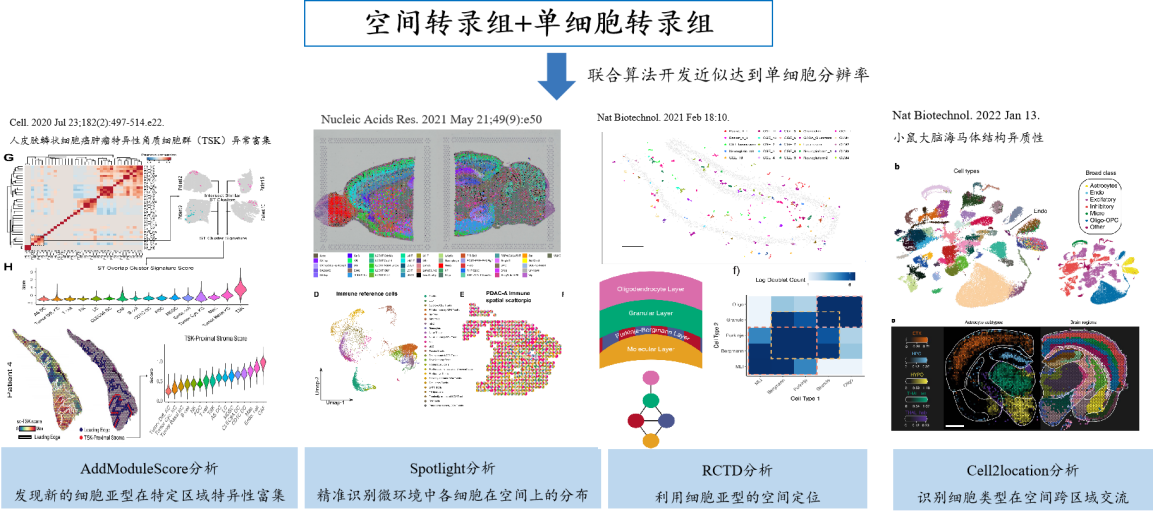 基因表達具有時(shí)間和空間特異性,單細胞轉錄組主要從時(shí)間上研究基因表達,能夠系統的識別組織中的細胞亞群,但沒(méi)有捕獲其空間組織信息,限制了我們對組織及細胞間相互作用的理解。而空間轉錄組的應用使得人們能夠從空間的角度解析數據,在空間上研究基因的表達。通過(guò)整合兩種數據模式,將單細胞轉錄組數據和空間轉錄組數據進(jìn)行聯(lián)合分析,在時(shí)空上分析基因的表達具有重要的意義。