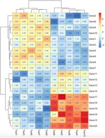 pheatmap(test,?display_numbers?=?TRUE,number_color?=?"blue")