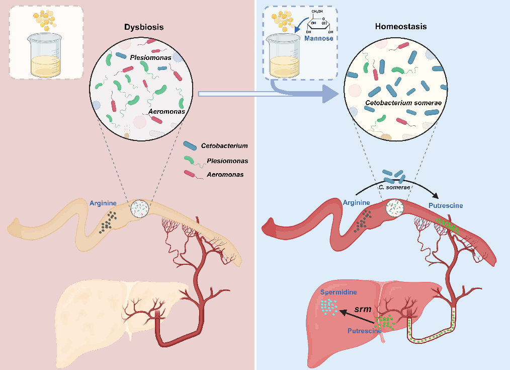 腸道微生物 – 百邁客生物 http://m.runyoushoujike.com BioMarker Mon, 03 May 2032 15:33:46 +0000 zh-CN hourly 1 https://wordpress.org/?v=4.7.22 http://m.runyoushoujike.com/wp-content/uploads/2020/04/cropped-512-512-32x32.png 腸道微生物 – 百邁客生物 http://m.runyoushoujike.com 32 32 中國農業(yè)科學(xué)院飼料研究所研究成果:腸道微生物產(chǎn)生的腐胺經(jīng)肝臟代謝為亞精胺后發(fā)揮改善魚(yú)體脂肪肝的效應 http://m.runyoushoujike.com/archives/35592 Tue, 03 Feb 2026 09:26:43 +0000 http://m.runyoushoujike.com/?p=35592 2025年12月20日,中國農業(yè)科學(xué)院飼料研究所周志剛團隊在iMeta在線(xiàn)發(fā)表研究論文,題為“Host-driven?hepatic?conversion?of?gut?microbiota-derived?putrescine?to?spermidine?mediates?mannose’s?protective?effects?against?hepatic?steatosis?in?zebrafish”。