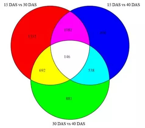 表2:三個(gè)不同組織中的差異表達基因統計。AN:花藥;OV:子房;LE:葉片。