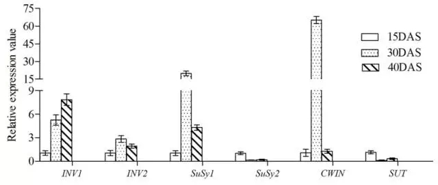 5.使用qRT-PCR驗證參與蔗糖代謝的差異表達基因。這6個(gè)差異表達基因的表達水平與RNA-seq結果是一致的。