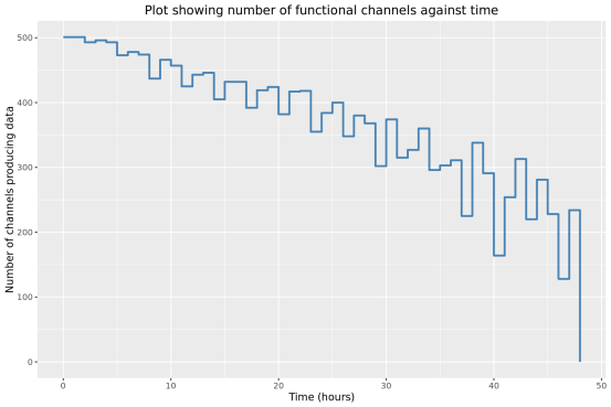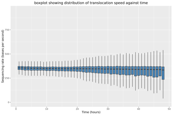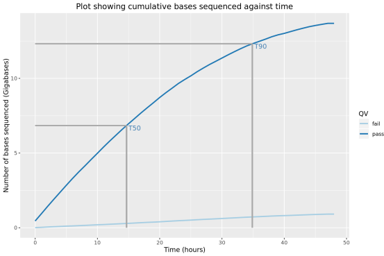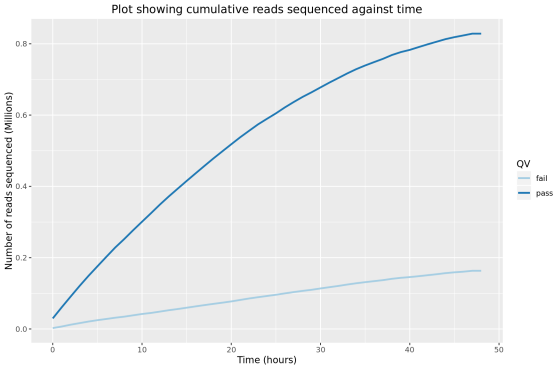 此部分內容統計了隨測序時(shí)間變化,測序累計序列個(gè)數,堿基個(gè)數,測序速度和有效工作納米孔數等指標的變化情況。