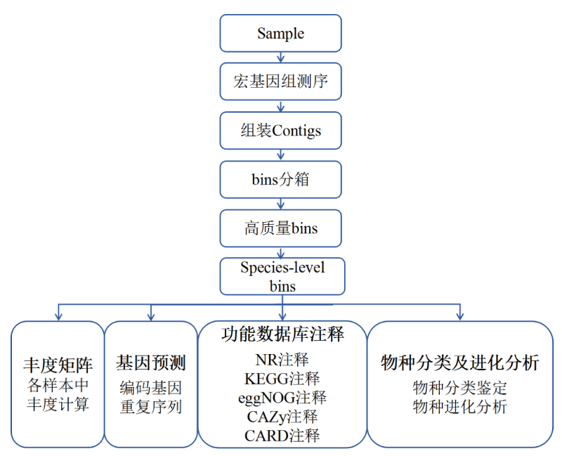 宏基因組測的是一個(gè)環(huán)境中的全部微生物的基因組信息,以獲得群落中全部的物種信息和功能信息,而B(niǎo)inning可以把宏基因組數據中來(lái)自同一菌株的序列聚到一起,得到一個(gè)菌株的基因組,對不同的菌株進(jìn)行分類(lèi)鑒定。Binning分析使我們得以洞察這些無(wú)法在實(shí)驗室培養獲得的菌株的生態(tài)適應機制、營(yíng)養互作機制和新陳代謝功能等,可以研究在環(huán)境中起重要作用的微生物、進(jìn)化機制、及其與宿主的互作機制等。