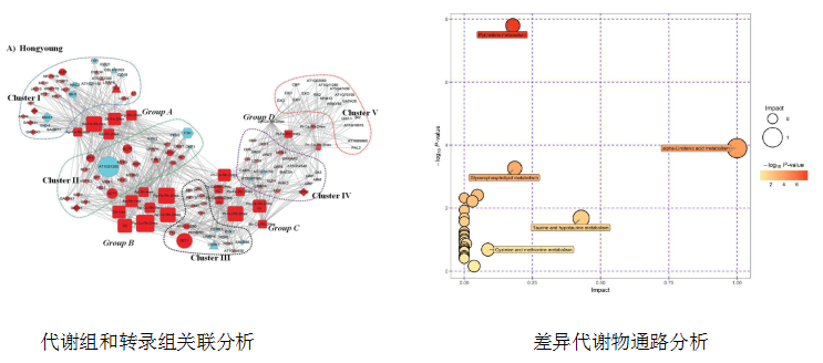 ??????生物體的表型由?DNA、RNA、蛋白質(zhì)及代謝物等各個(gè)層面調控決定,mRNA?研究可以獲得樣本之間差異基因、復雜調控網(wǎng)絡(luò ),而基因與表型不能直接關(guān)聯(lián),難以鑒定控制關(guān)鍵途徑的結構及調控基因,結合代謝組,輔助時(shí)序表達的眾多基因進(jìn)行”共表達”分析,揭示基因功能,并將基因與表型關(guān)聯(lián)起來(lái),快速鑒定核心調控網(wǎng)絡(luò ),確定關(guān)鍵候選基因。