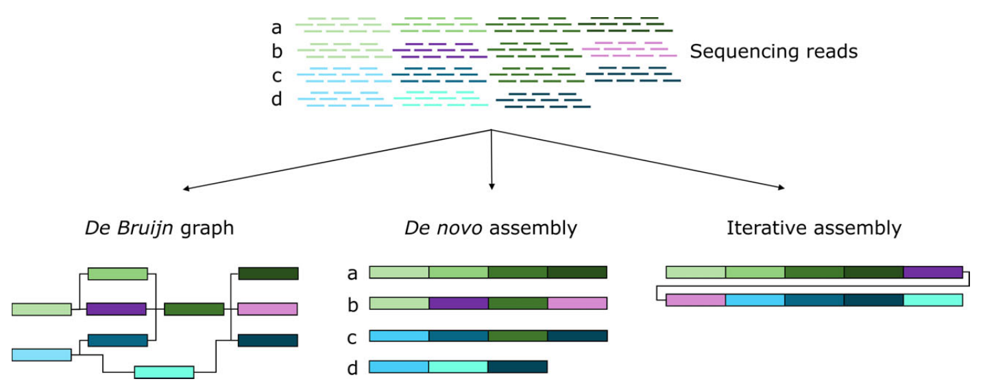 泛基因組主要有3種構建方法:Map to pan,Iterative assembly和De novo assembly。從頭組裝(De novo assembly):是構建泛基因組或者參考基因組最經(jīng)典的方法,分別對多個(gè)個(gè)體分別進(jìn)行從頭組裝并且注釋?zhuān)缓髮⑺玫拿總€(gè)個(gè)體的組裝好的序列與參考序列基因組進(jìn)行互相比對,找出比對不上的區域或者基因,這些個(gè)體獨特的基因就是非核心基因。