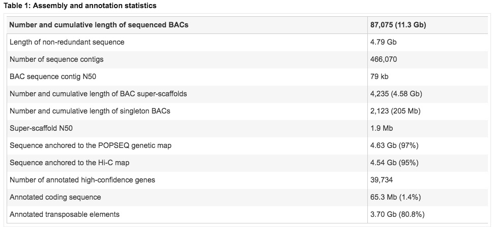 到底是什么解救了大麥基因組?廢話(huà)不多說(shuō),看看人家的組裝結果(表1)。