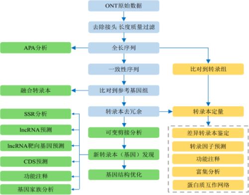 Nanopore全長(cháng)轉錄組測序是指基于牛津納米孔公司(Oxford Nanopore Technologies,ONT)三代測序平臺進(jìn)行全長(cháng)轉錄組測序,無(wú)需打斷,可直接讀取從5’端到3’端polyA尾的高質(zhì)量單個(gè)RNA分子全長(cháng)序列,準確辨別二代測序無(wú)法準確識別的可變剪接(AS)、可選擇性多聚腺苷酸化(APA)、融合基因、lncRNA及其靶基因,且可同時(shí)對基因和轉錄本進(jìn)行定量分析。ONT全長(cháng)轉錄組已廣泛應用于生長(cháng)發(fā)育、環(huán)境適應、免疫互作、突變表型、腫瘤的發(fā)生、臨床診斷和藥物研發(fā)等領(lǐng)域。