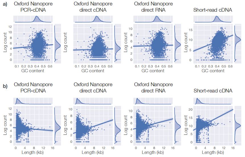 綜上,nanopore全長(cháng)轉錄組測序受基因的GC含量和長(cháng)度偏好更小。