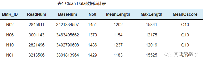 Nanopore測序通過(guò)對納米孔的DNA/RNA單分子實(shí)時(shí)電信號進(jìn)行檢測及對應,即可計算獲得相應堿基的類(lèi)型,完成序列的實(shí)時(shí)測定。為確保Reads有足夠高的質(zhì)量,將下機原始測序數據(raw reads)過(guò)濾短片段和低質(zhì)量的reads,得到clean reads,保證后續分析的準確性。