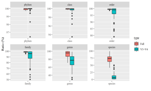 全長(cháng)微生物多樣性最主要優(yōu)勢為種水平注釋率高,三代測序技術(shù)可以實(shí)現多多個(gè)高變區進(jìn)行測序,能夠更為準確的還原群落結構。