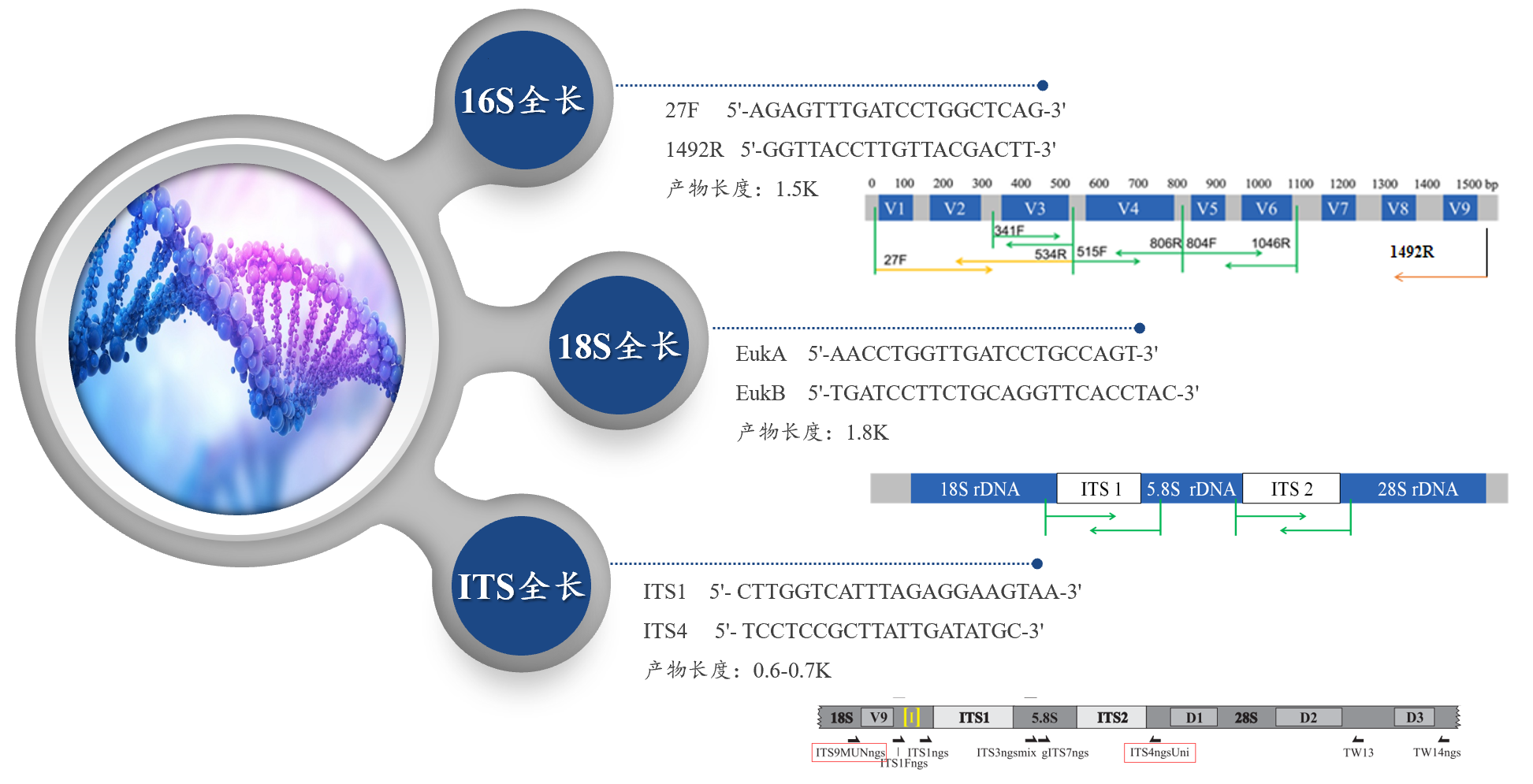 | ITS 全長(cháng) | ITS1 | 5′- CTTGGTCATTTAGAGGAAGTAA-3′ | 0.6-0.7K | |