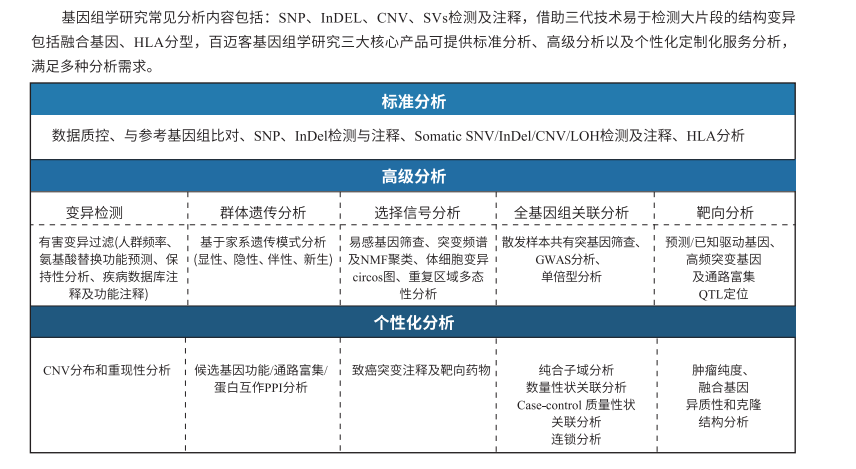 百邁客借助BGI、Nova、ONT、PB等測序平臺,研發(fā)專(zhuān)業(yè)、完善的二代、三代人重測序技術(shù),并基于自動(dòng)化建庫系統、百邁客云平臺,從而打造真正意義上多層次、多選擇的重測序檢測平臺,提供全基因重測序全流程服務(wù)。