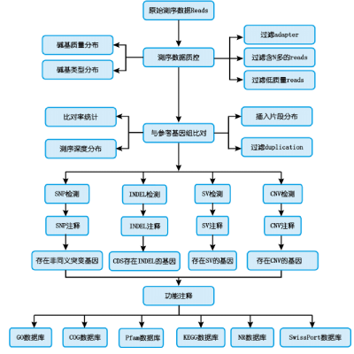 全基因組重測序(whole genome sequencing,WGS)對全基因組進(jìn)行測序掃描,能在全基因組范圍之內解讀所有常見(jiàn)和稀有變異信息,全面檢測單核苷酸多態(tài)位點(diǎn)(Single Nucleotide Polymorphisms, SNP)、插入缺失位點(diǎn)(Insertion Deletion, InDel)、結構變異(Structure Variation,SV)以及拷貝數變異(Copy Number Variation, CNV)。