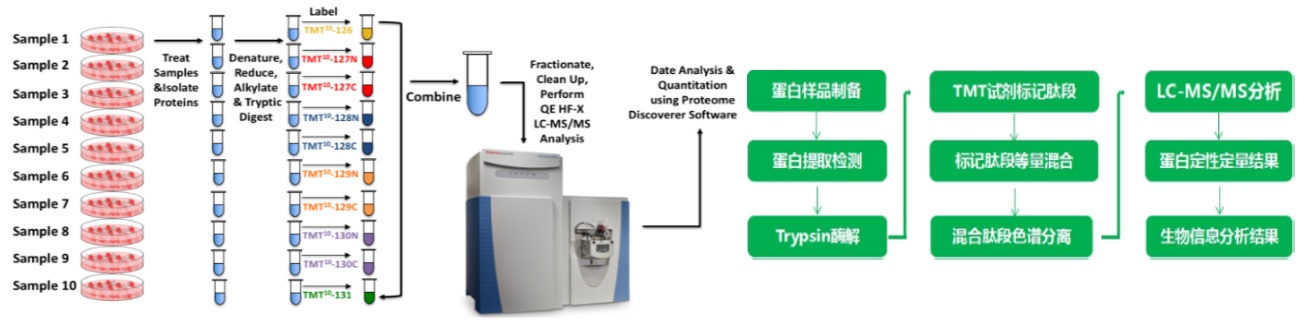 TMT(Tandem Mass Tags)有美國Thermo 公司研發(fā)的多肽體外標記定量技術(shù),采用16種同位素標簽,通過(guò)特異性標記多肽的氨基酸基團,一次上機可實(shí)現16不同樣本中蛋白質(zhì)的相對定量,是近年來(lái)定量蛋白質(zhì)組學(xué)常用的高通量篩選技術(shù)。
